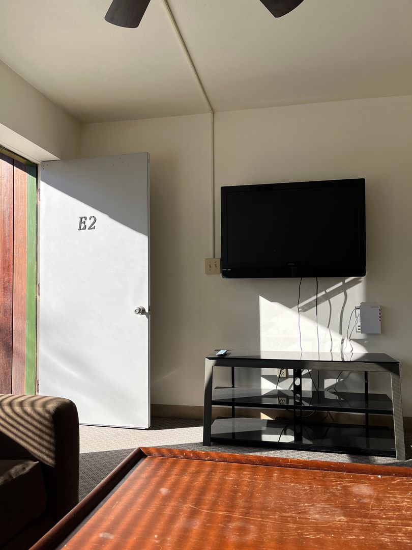 - Fully furnished with living room, bedroom, and TV furnishings included