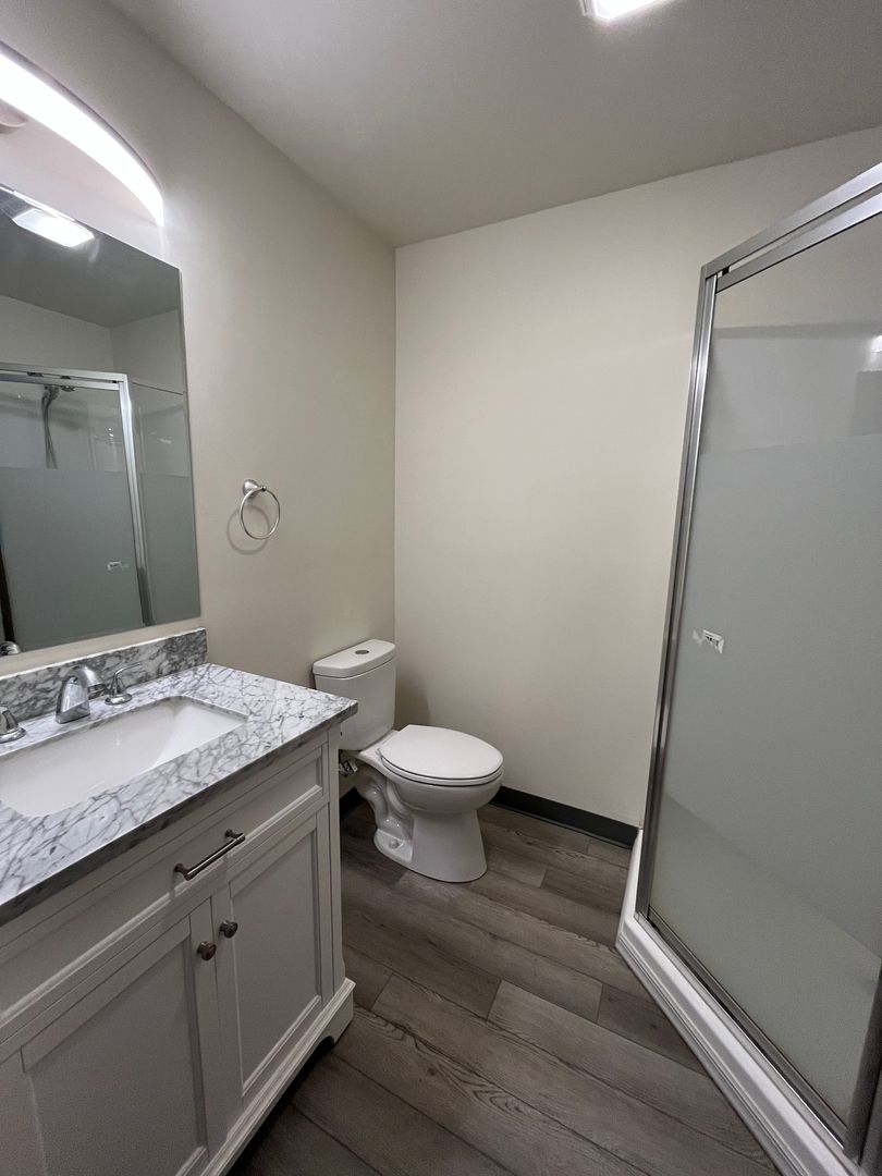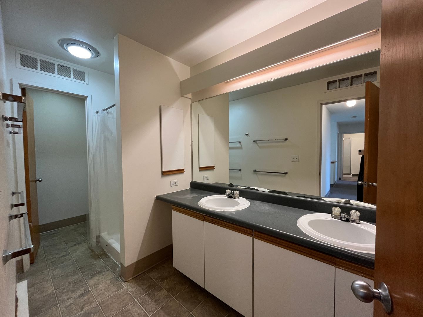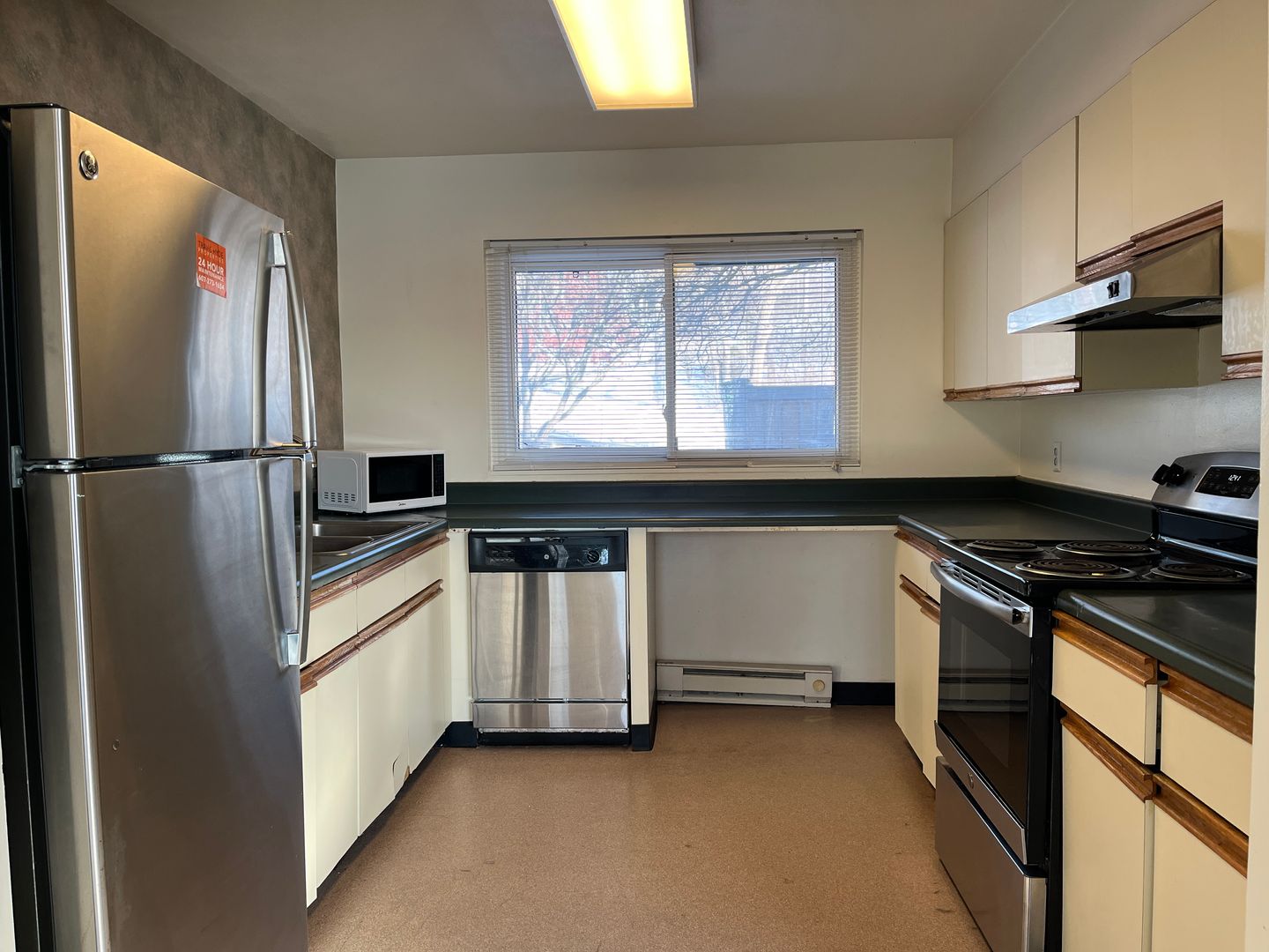 - Large kitchen with essential appliances (refrigerator, microwave, dishwasher)